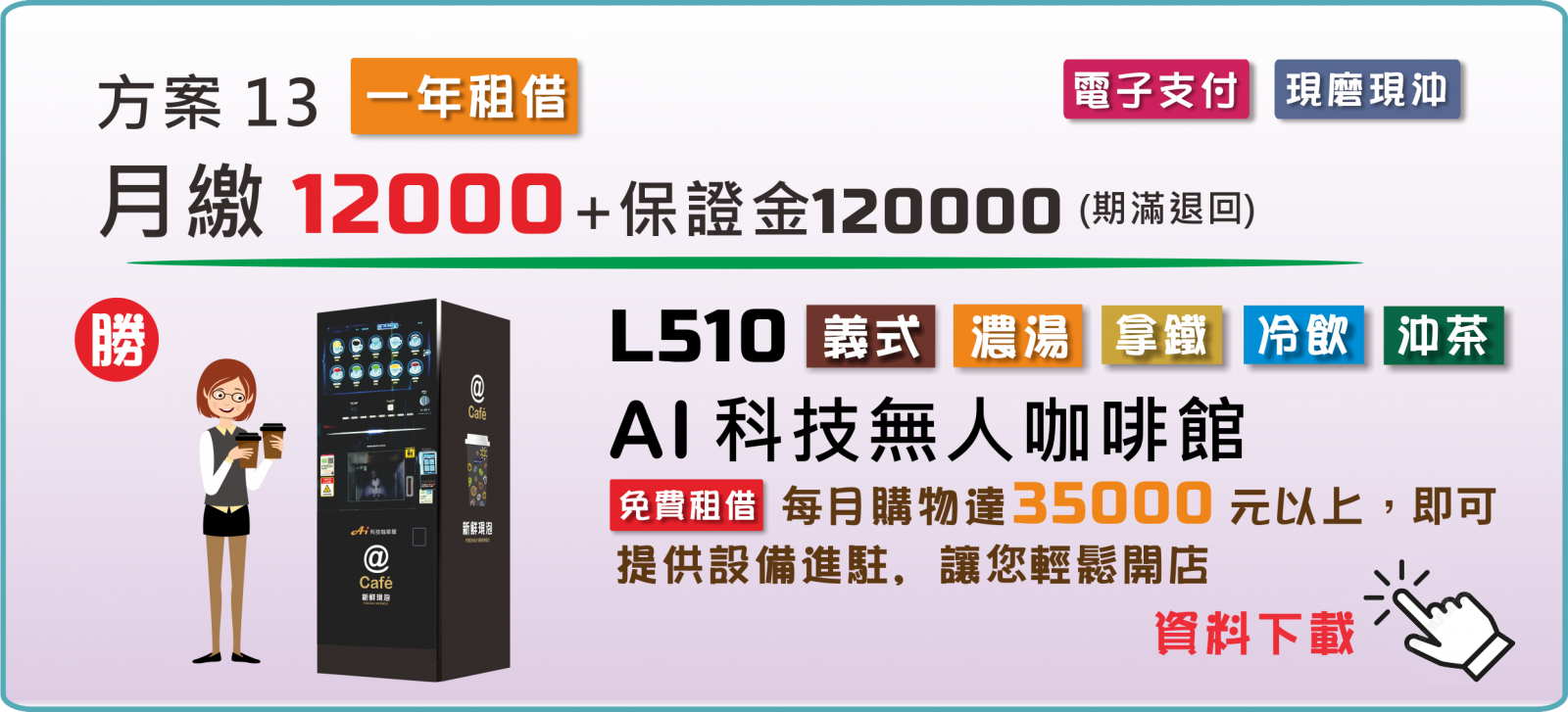 新創的 AI 科技咖啡販賣設備 "吧台高手" 免費業務派遣方案 ,適合寵物餐廳,遊樂景點,觀光工廠抵換門票使用。今後開店無需再為吧台人力短缺及設備投資問題擔憂,AI 科技"吧台高手"業務派遣,可以一次解決吧台冷熱飲品供應,協助您輕鬆開店獲利。