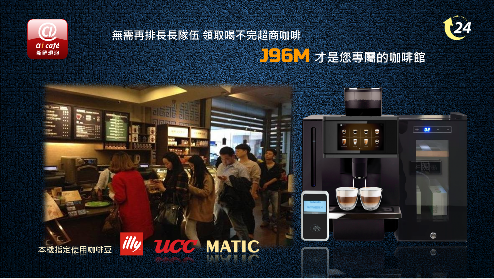 J96M AI自販機多元電子支付設計,任何支付方式,只需直接靠卡或掃描3~5秒鐘即可完成支付,無需等待立即製作一杯好咖啡,這是全新 @ ai cafe 科技帶來無人咖啡新的便利生活。