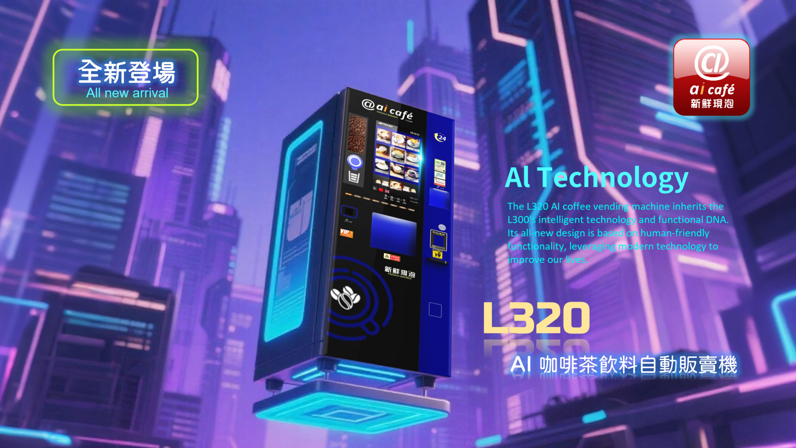 全新" L320 " 自販機上市,這次更以 "友善人類 "為主題,讓 "AI 的愛 " 投入更多全新設計元素,如螢幕下移,多國語言,環保折扣,愛心發票,杯蓋分配,自動門及手搖飲...等新功能。