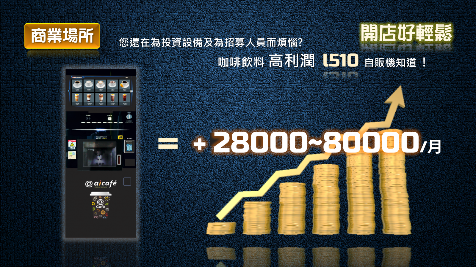 營業場所每月可增加飲料營業收入高達 28000~80000 元。