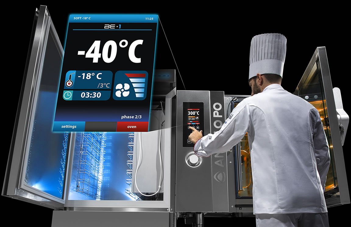 • 數字,可編程,COMBISTAR BX具有觸摸鍵,用於選擇烹飪或重新加熱程序或在乾燥,蒸汽或組合模式下編程手動烹飪。