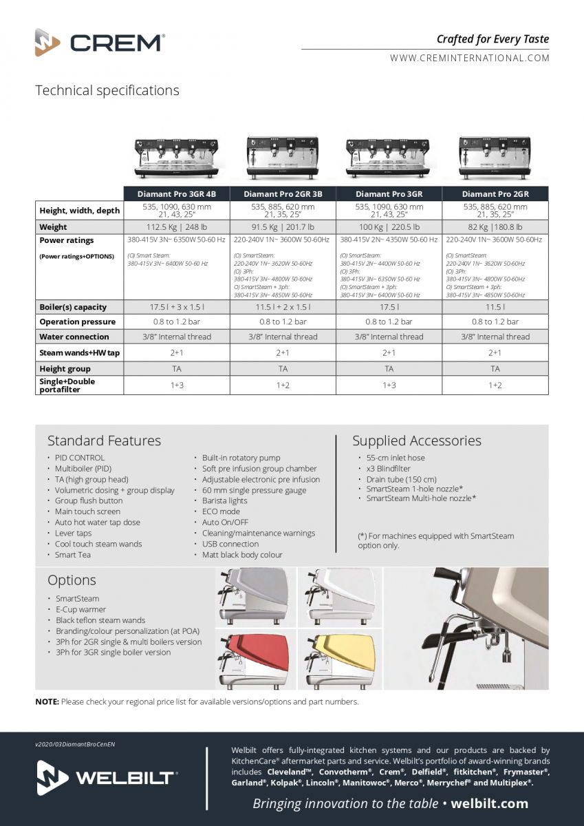 新的 Crem 徽標揭幕,原屬同家族的 EXPOBAR+SPENGLER+COFFEE QUEEN 加入一個三角形的 Welbilt'W',以作為Welbilt品牌家族成員的驕傲。新的設計團隊將帶來更優質咖啡體驗及承諾。