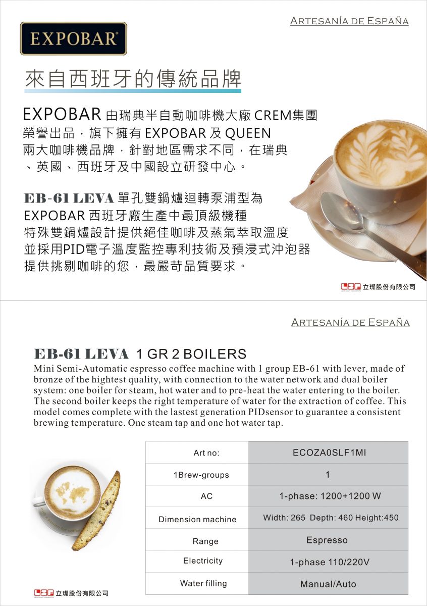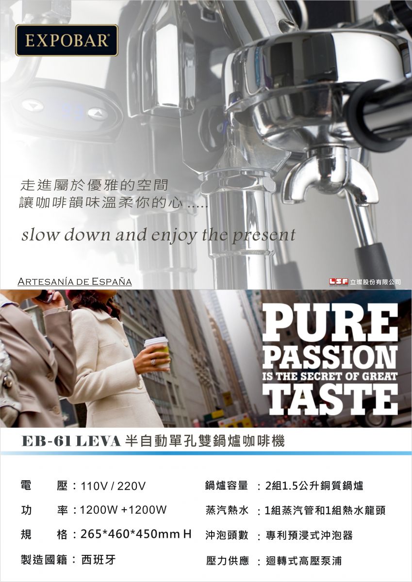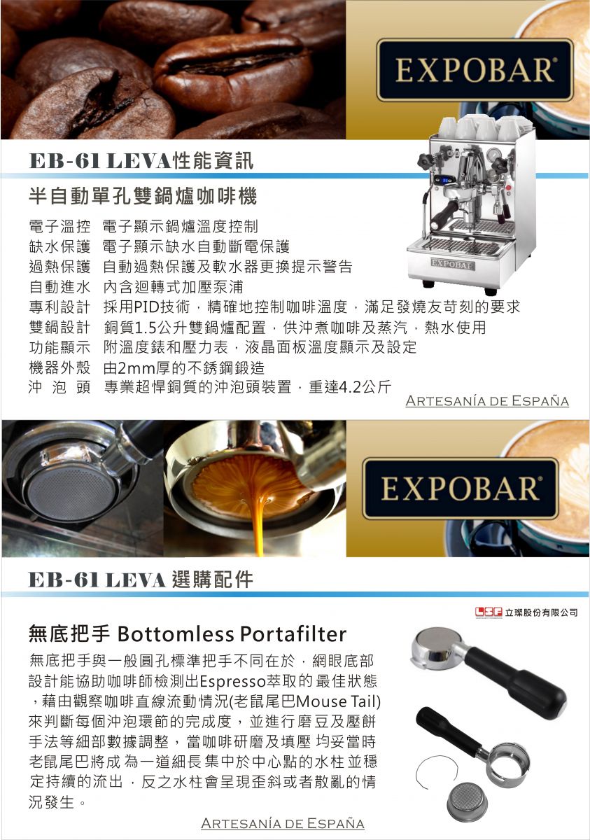LEVA 是EB-61旗艦版機種, 唯一雙鍋爐+迴轉式泵浦+PID電子溫控設計,值得你珍藏。。