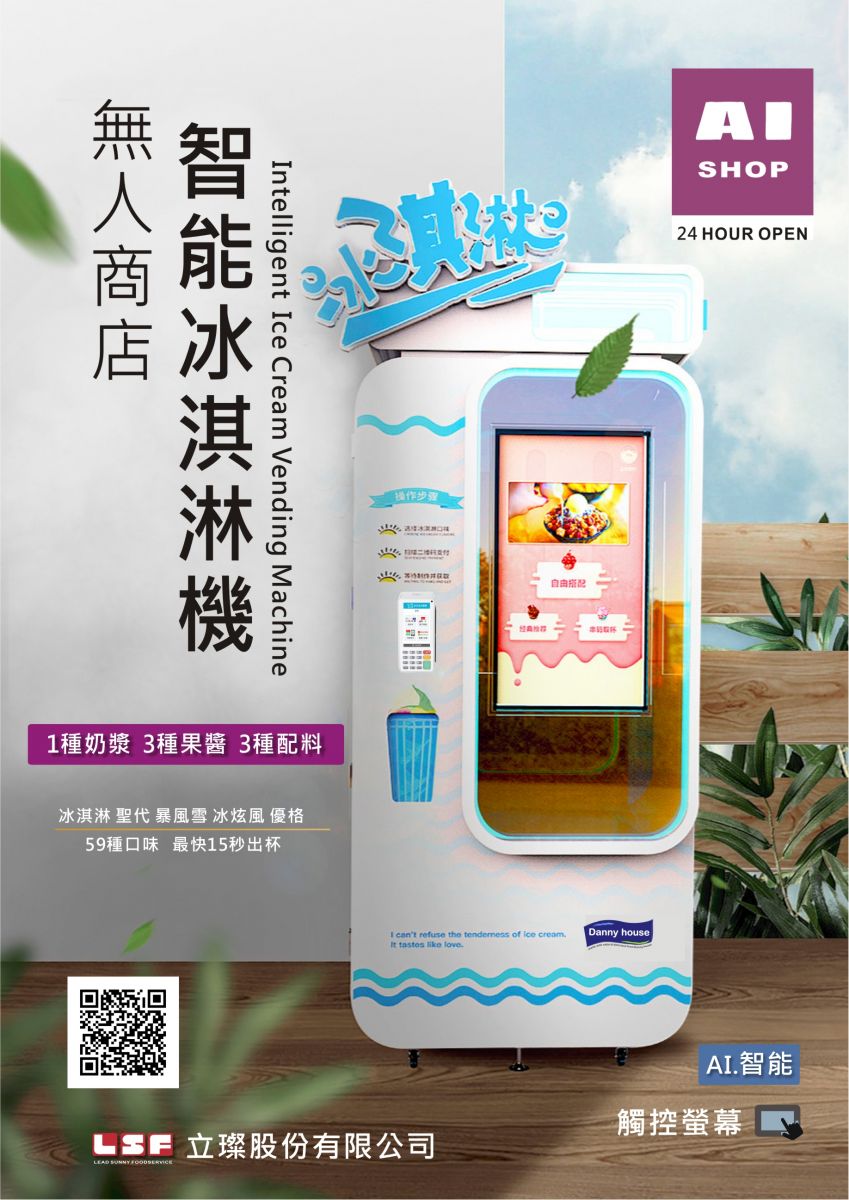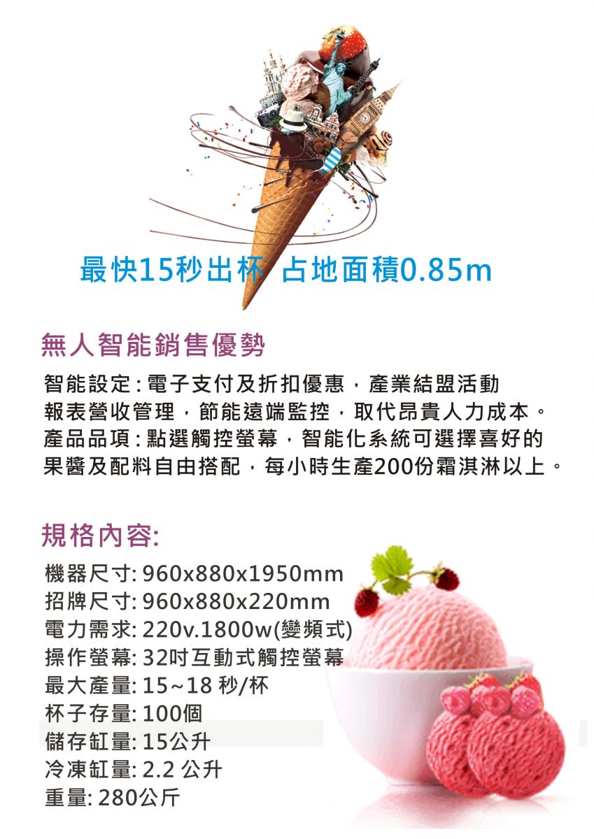特性 : 冰淇淋可自動加入三種糖漿及三種粉料