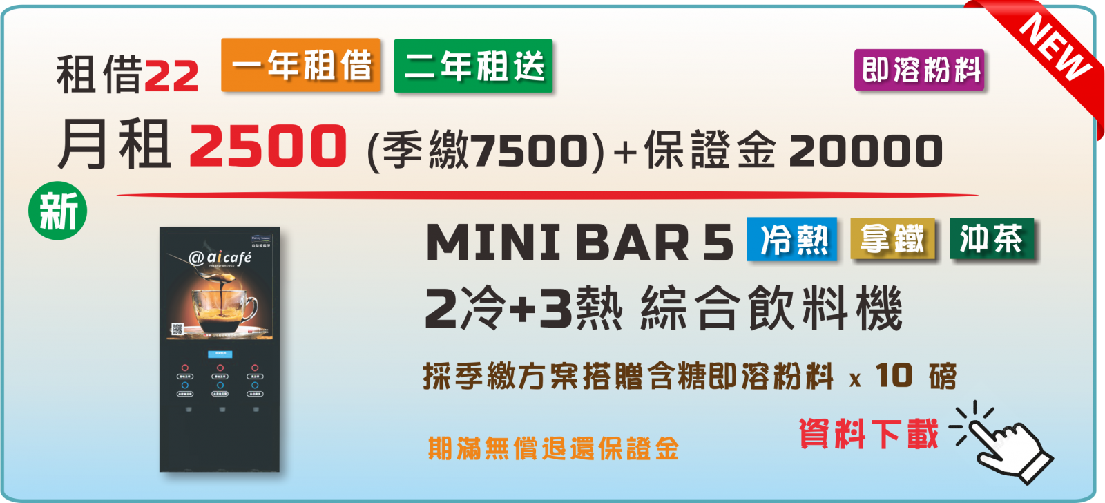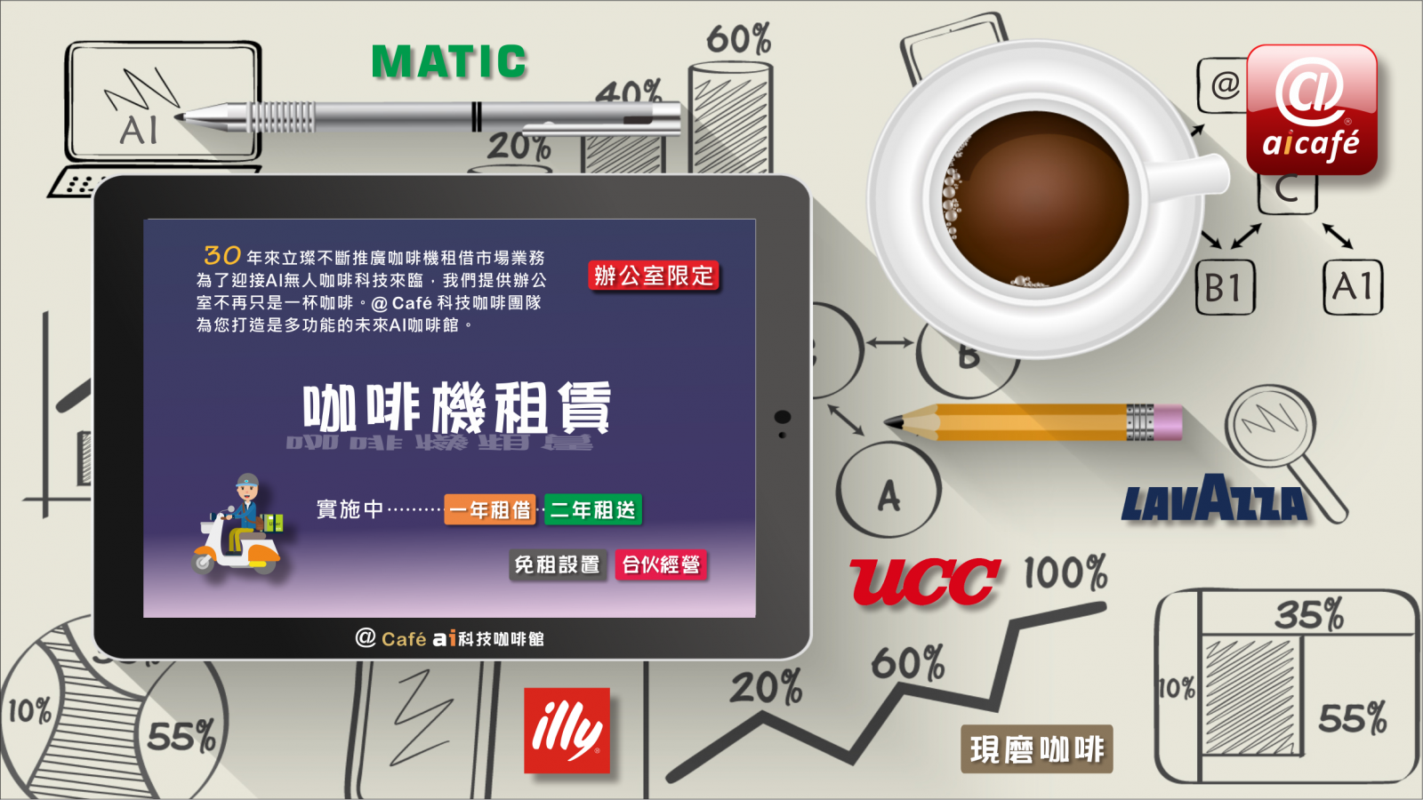 "愛咖啡就趁現在!"您還為支付高額購機費用及維修問題煩惱嗎? AI咖啡一年租借方案,現在僅支付少許費用,愛就從這一杯好咖啡開始!