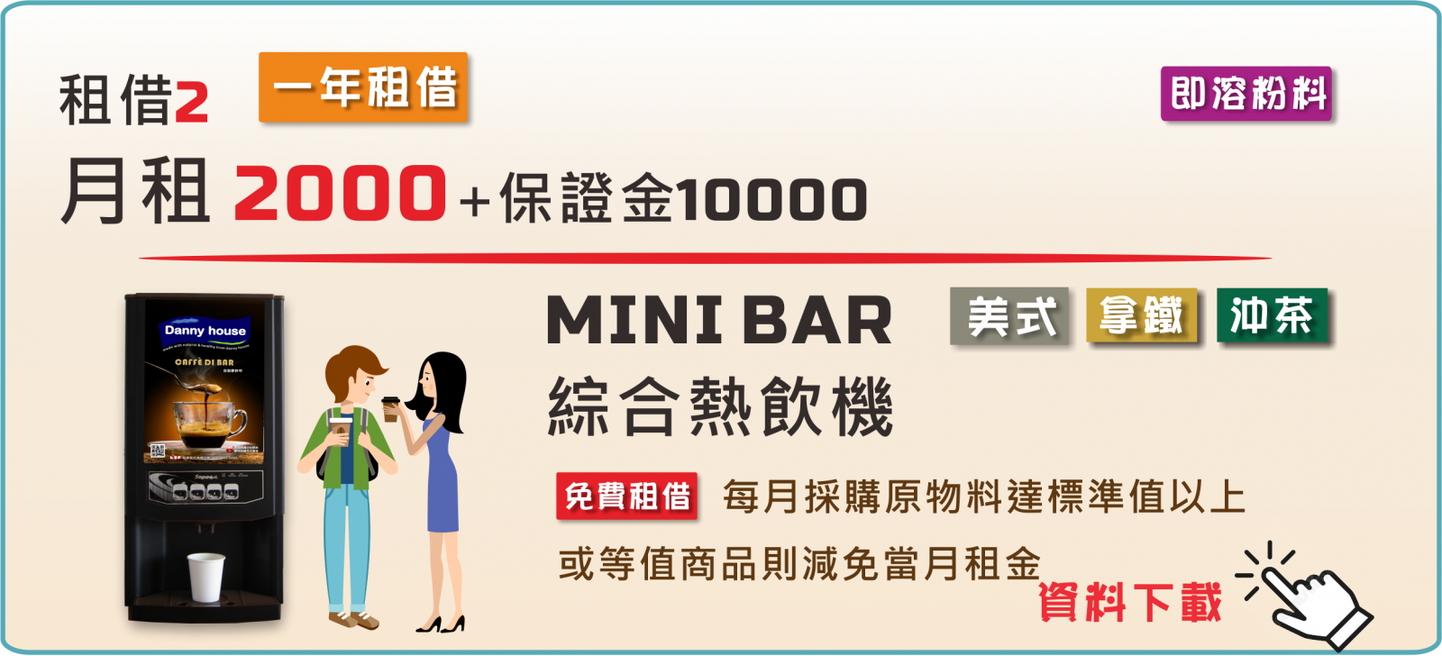 歡迎您進入全國最大 DANNY HOUSE 餐飲設備租借櫥窗,我們超過50種以上吧台廚房設備租借方案,提供咖啡餐飲行業輕鬆創業經營。