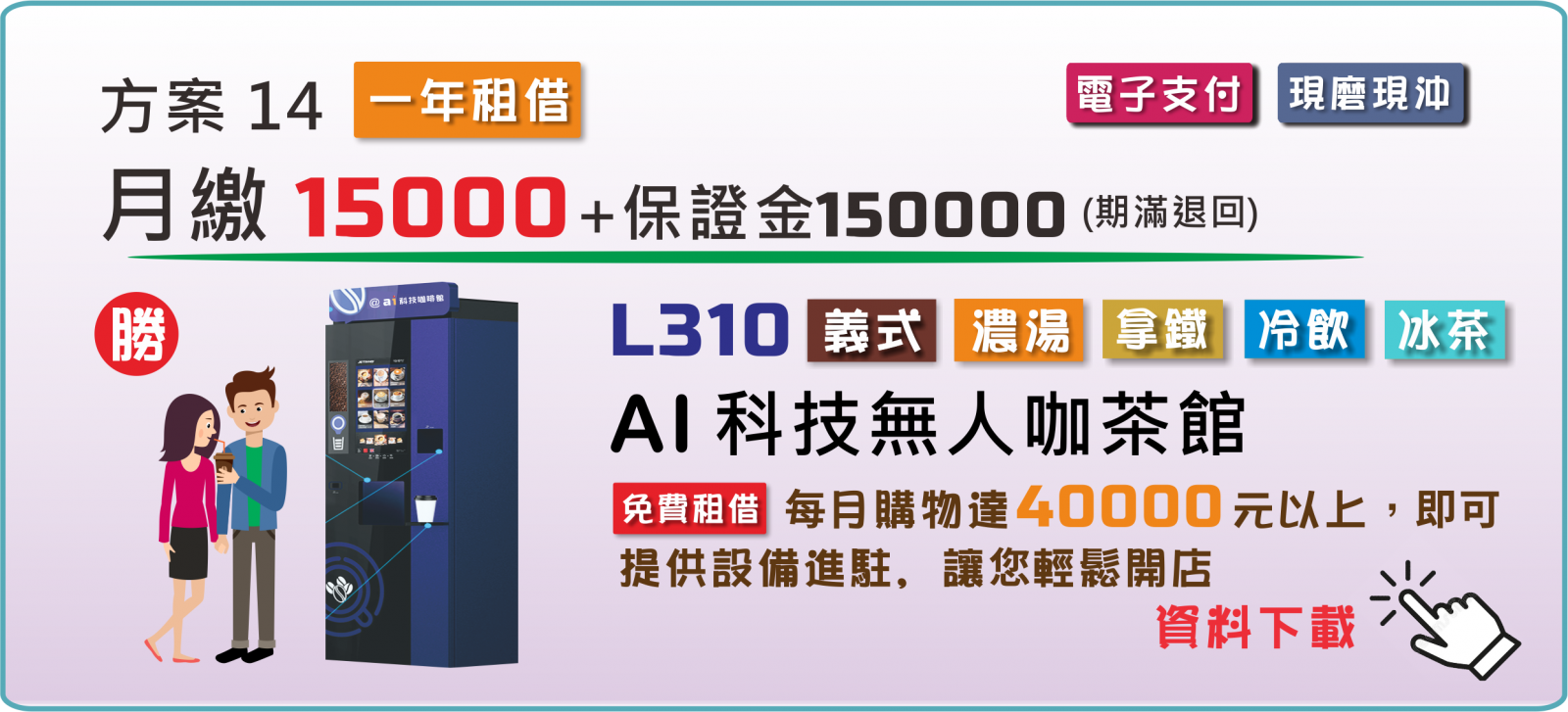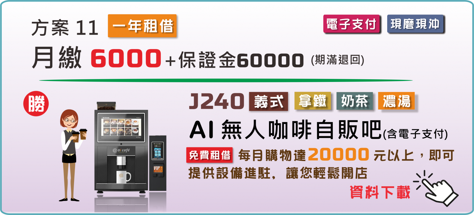 新創的 AI 科技咖啡販賣設備 "吧台高手" 免費業務派遣方案 ,適合寵物餐廳,遊樂景點,觀光工廠抵換門票使用。今後開店無需再為吧台人力短缺及設備投資問題擔憂,AI 科技"吧台高手"業務派遣,可以一次解決吧台冷熱飲品供應,協助您輕鬆開店獲利。
