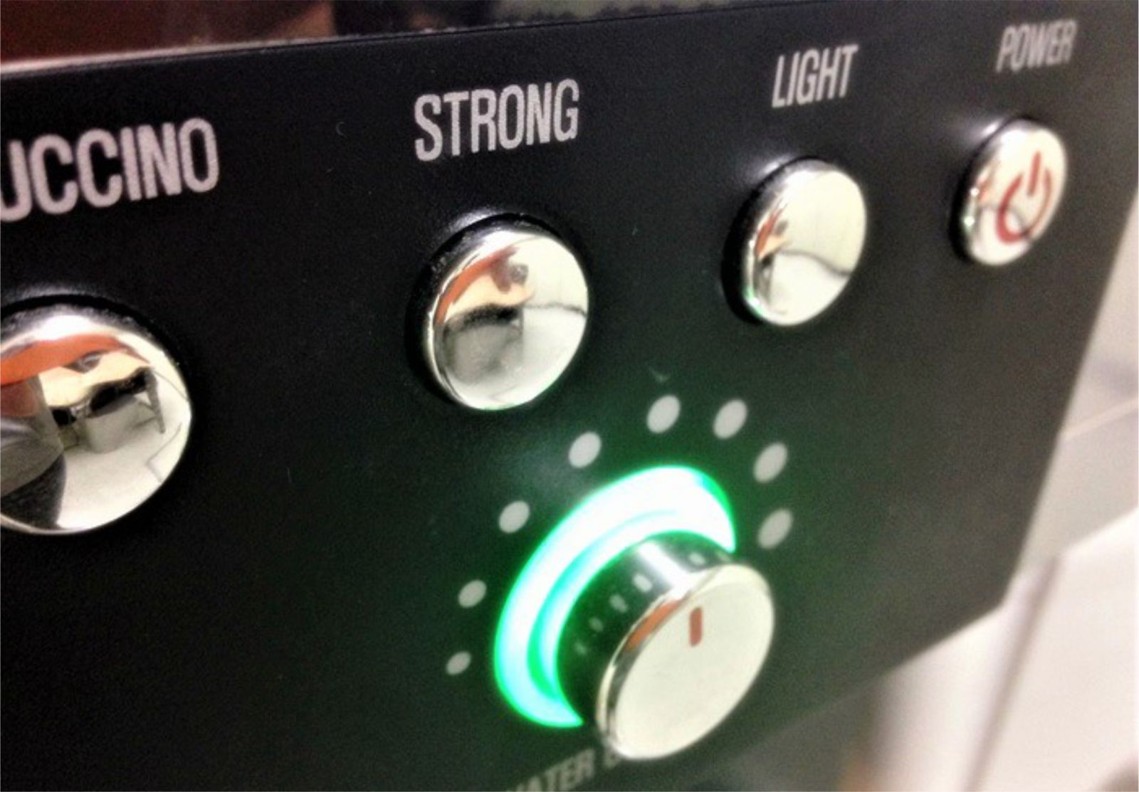 AOF自動磨豆技術可自動調整咖啡粗細。可製作濃縮+拿鐵+手沖咖啡三種選擇。