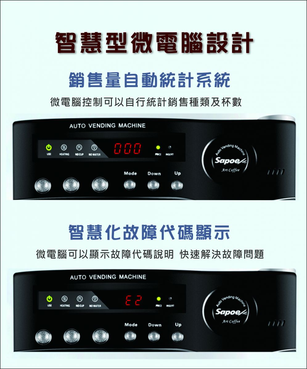 6. 營業統計 : 微電腦設計可個別統計產品杯數,協助營業分析。