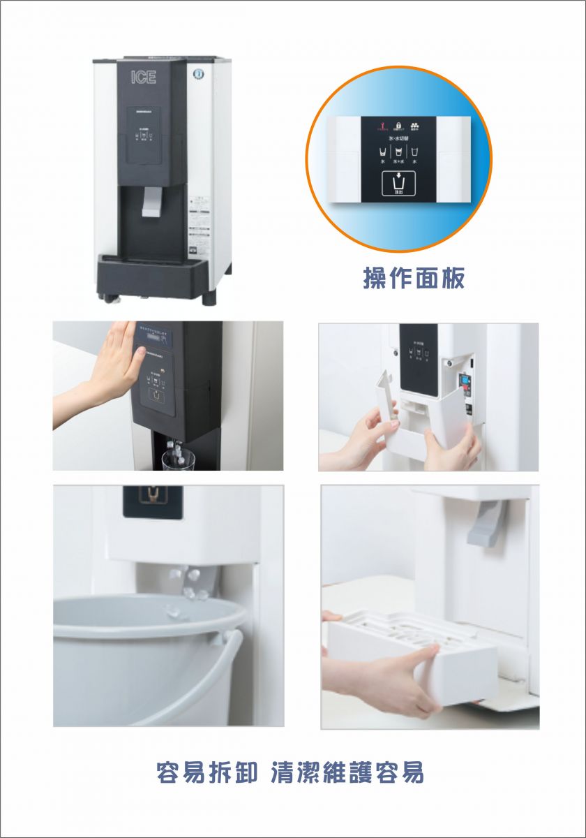 顆粒冰體積介於碎冰與新月型冰之間,入口容易,大小適中,常與飲料機搭配使用。適用 : 自助吧、飲料吧...等