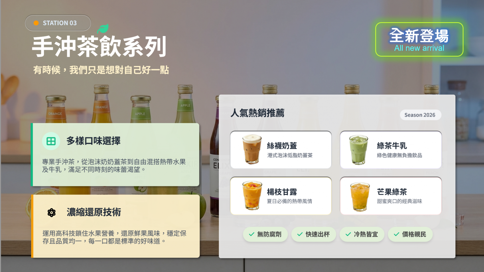 突破 AI 手搖飲"冷萃茶"及"低脂奶蓋"技術,冰楊枝甘露,生椰拿鐵,絲襪奶蓋茶,芒果綠...新上市。