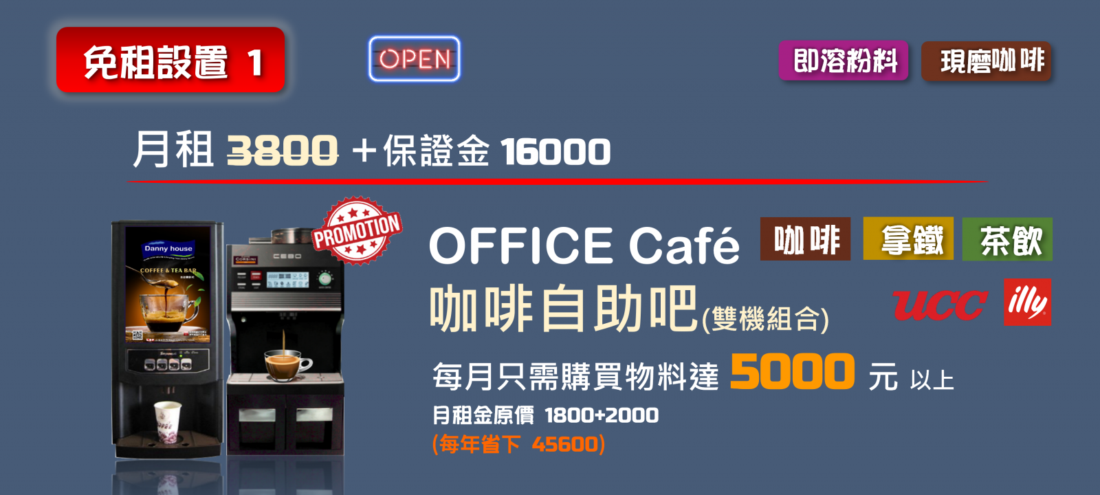 如今您在辦公室,不只是喝一杯咖啡 ! 我們讓辦公室提升至品牌咖啡館的氛圍,多樣的冷熱飲料及零食組合,讓您時時刻刻都可以感受到"VIP的尊榮"貼心照顧!